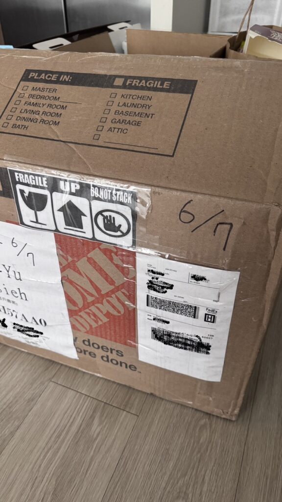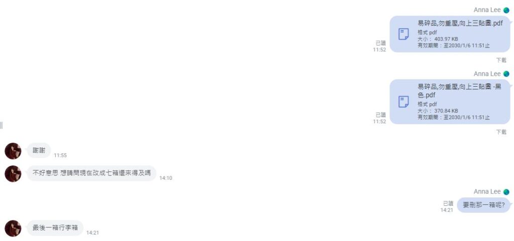 在正式进入打包阶段前,168moving 先协助林小姐盘点所有行李内容,并提醒她留意需要特别处理的物品种类。在整理过程中,林小姐发现行李中包含不少易碎物品,例如餐具、玻璃制品、装饰品,以及对她而言具有纪念价值的个人对象。为了降低长途运送过程中因碰撞而造成损坏的风险,168moving 贴心提供清楚醒目的「易碎物品提醒标签」,让林小姐可以直接贴在外箱上,提醒后续搬运与装卸人员多加留意。这样细致的安排,让她在忙碌之余感到格外安心。